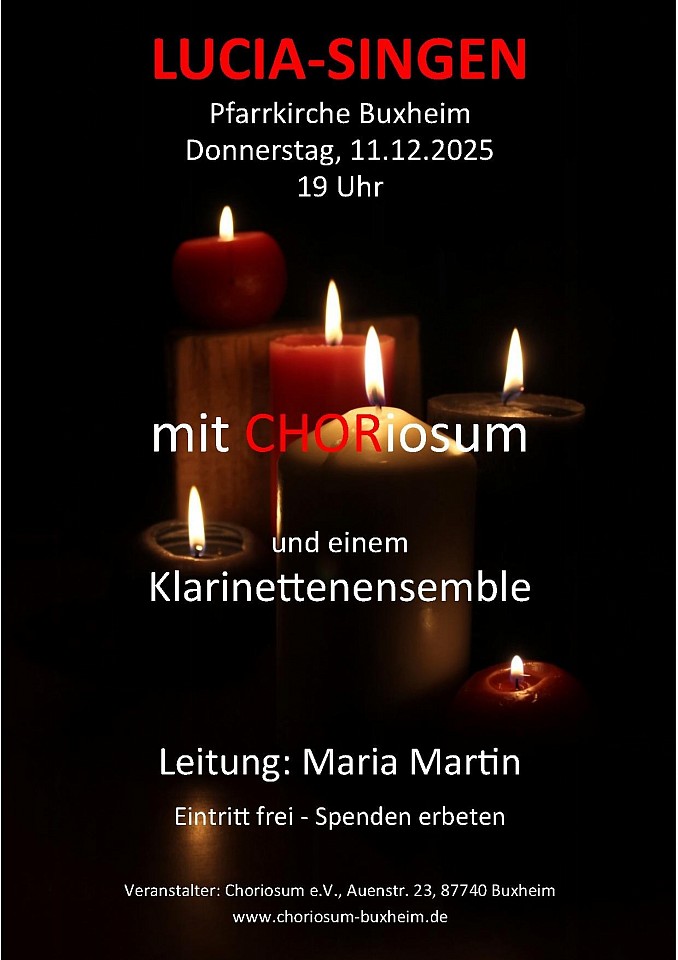 Do, 11.12.25, 19 Uhr Lucia-Konzert, Pfarrkirche St. Peter und Paul, Buxheim
